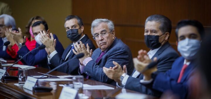 Con el propósito de solicitar a los diputados de la LXIV Legislatura una reasignación en su Presupuesto de Egresos 2022 por un monto de 129 millones de pesos para destinarlo a las becas para personas con discapacidad, el gobernador Rubén Rocha Moya se reunió este martes por la noche con los miembros de la Junta de Coordinación Política.